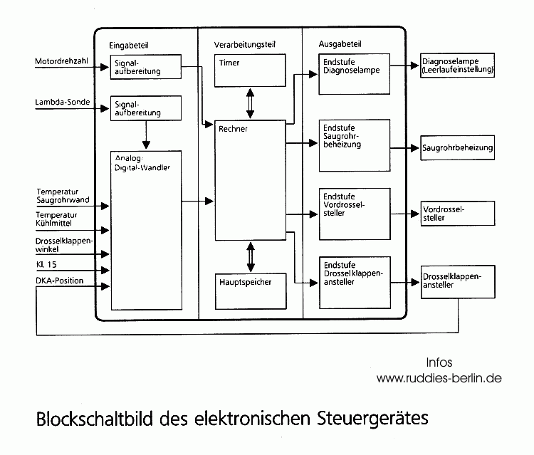 erfassten Signale und steuert den Vordrosselsteller und den