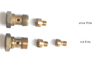 (alt ) M5 ( alt ) Hauptdüsenträger mit H-Düsen mit Rille oder Konus "0"+ "X" M5x0,75 jetzt normal Die neueren Düsen wurden mit einem konischen Sitz gefertigt "X" 3.33124. + die Größe .29 = x100 |