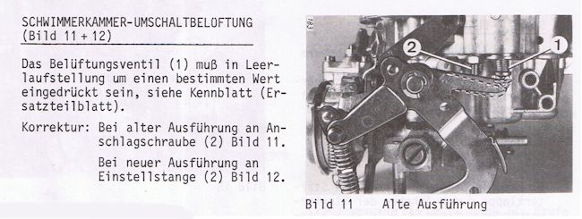 Bei einigen Vergasern mit starrem Pumpenhebel wird die Pumpenmenge bei schneller Betätigung durch das Pumpenüberdruckventil / Pumpenentlastungsventil, verringert. Die volle Pumpenmenge wird nur bei langsamer Betätigung erreicht. z,B. schnell: cm³ / Hub = 1,0 +- 0,15 langsam :cm³ / Hub = 1,8 +- 0,15 32DIDTA BMW schnell:cm³ / Hub = 0,87 +- 0,1 langsam:cm³ / Hub = 1,45 +- 0,2 TDID AUDI |