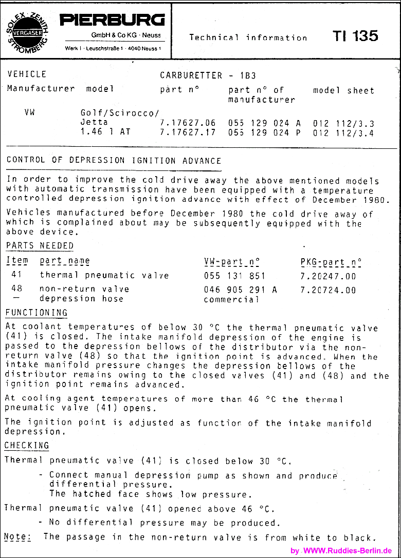 Service Instructions Vehicle AUDI + VW Carburetter: 1B3 PIERBURG 4/001-5.1E 09.1979